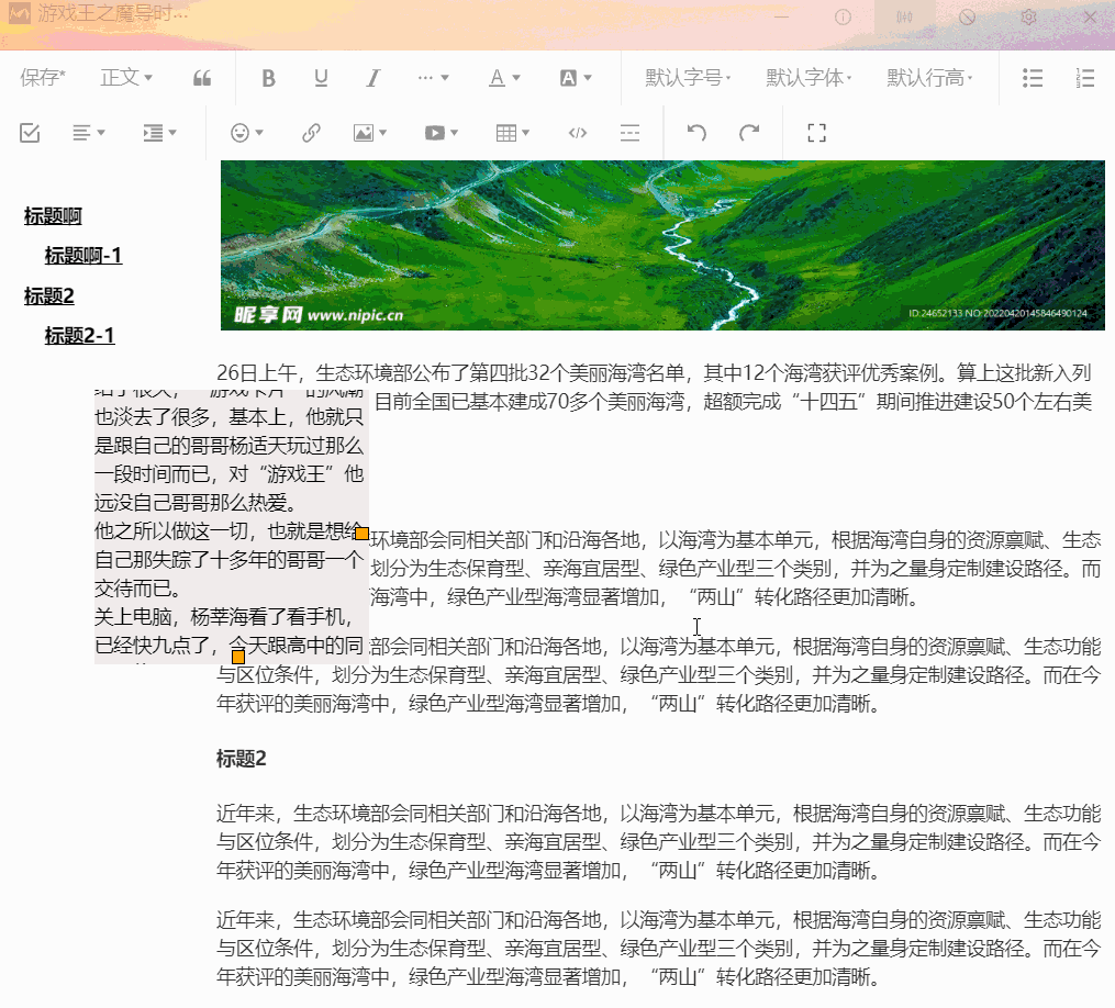 2.“保存”,没有*时,则表示摸鱼内容框锁定,位置固定,可以操作内容了